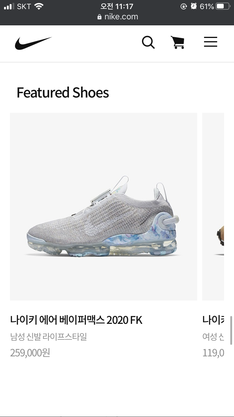 이처럼 모바일에서 보았을 때와 데스크탑에서 보았을 때, 사이트 레이아웃은 서로 다르다. 만약 내가 모바일에서 데스크탑의 레이아웃이 그대로 적용된 화면을 봤다면, '나이키 에어 베이퍼맥스 2020 FK'를 구매하는 일은 없었을 것이다. 많은 회사에서 자신들의 웹사이트를 반응형으로 제작하는 이유도, 그렇게 했을 때 사용자에게 모바일 환경에서의 차별화된 '사용자 경험'을 줄 수 있기 때문일 것이다.