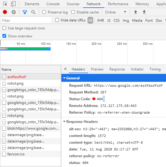 3) Status Code란? 정해진 규칙이다. HTTP 응답 상태 코드 번호가 200이면 "요청이 성공적으로 되었습니다"라는 뜻을 의미한다. 또한 대표적인 상태코드는 404이다. 이는 "서버가 요청한 페이지(Resource)를 찾을 수 없다"란 뜻이다. 다음의 예시를 참고하자.