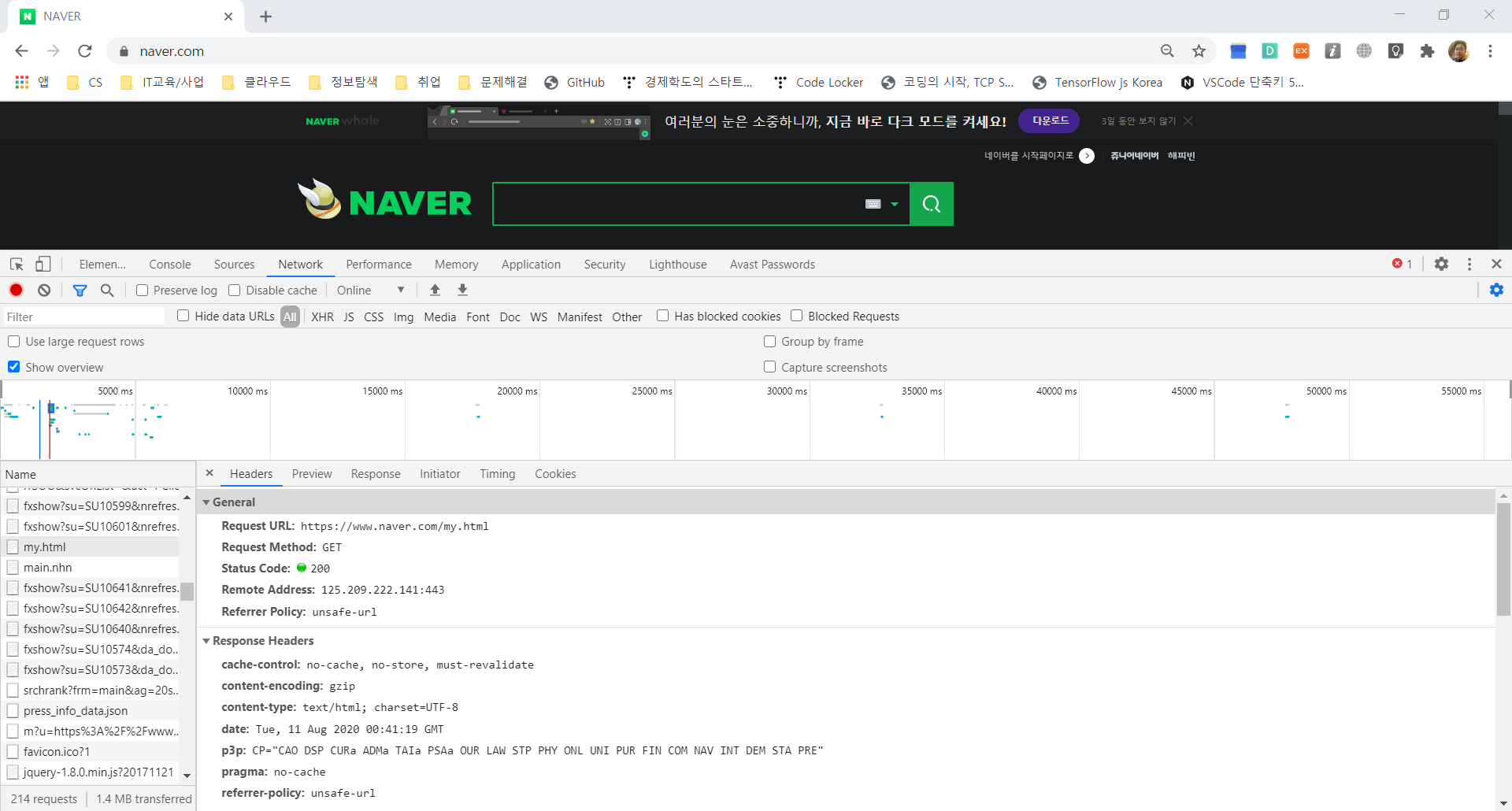 2) Requset Method란? Get과 Post가 있다. Get은 주소를 가져오는 것이며, Post는 주소를 보낼 때 사용한다. 이 경우에는, my.html이라는 파일을 서버 측으로부터 가져왔으므로 Get 방식이 되는 것이다.