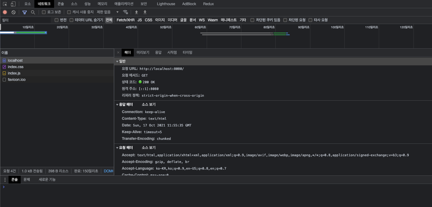 주소창에 위와 같은 URL을 입력하면, HTTP 네트워크를 통해 서버로부터 응답 받은 화면을 볼 수 있습니다. 아래와 같은 정보는 개발자 도구 - 네트워크 탭에서 확인할 수 있습니다.