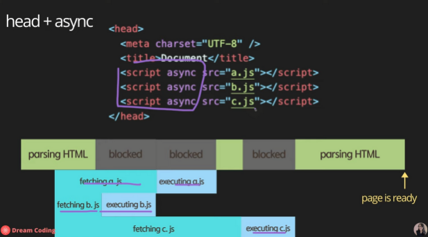 - head + async : HTML parsing과 동시에 발생한다.