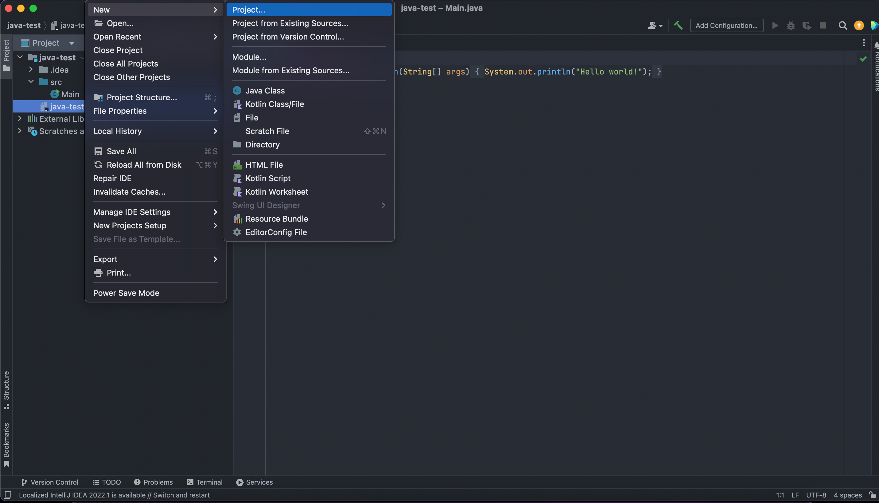 Mac 기준으로 File > new > Project