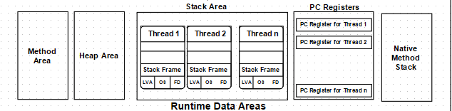 또 이 프레임은 메서드가 하나 호출될 때마다 새로 생기고 작업이 완료되거나 예외가 생기면 종료돼요. 그리고 하나의 스택 프레임에는 LVA(Local Variable Array), OS(Operand Stack), 상수 풀 참조 주소(Reference to Constant Pool)가 존재하는데, 바이트 코드가 실행되는 과정에서 LVA에 계산 결과를 저장하고 연산 결과를 OS에 저장해요. 또 참조 주소를 확인해, 실제 메서드 값을 반환할 때 사용돼요.
