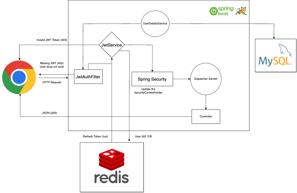 Spring Security와 JWT를 활용했을 때의 다이어그램
