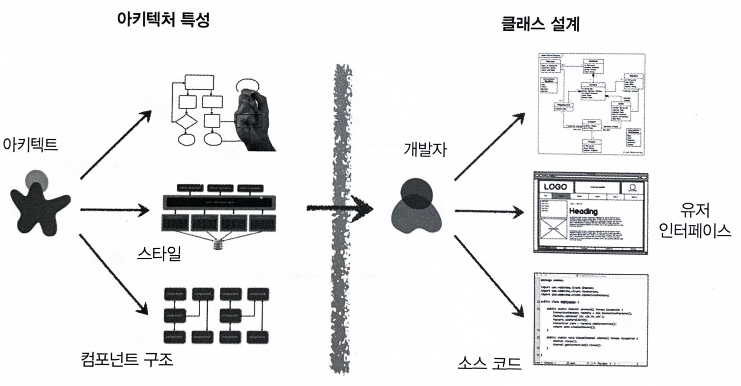 제대로 된 아키텍처를 만들려면 반드시 아키텍트와 개발자를 가르는 가상의 물리적 장벽을 허물고 두 팀이 양방향으로 소통하는 관계를 정립해야 한다.
