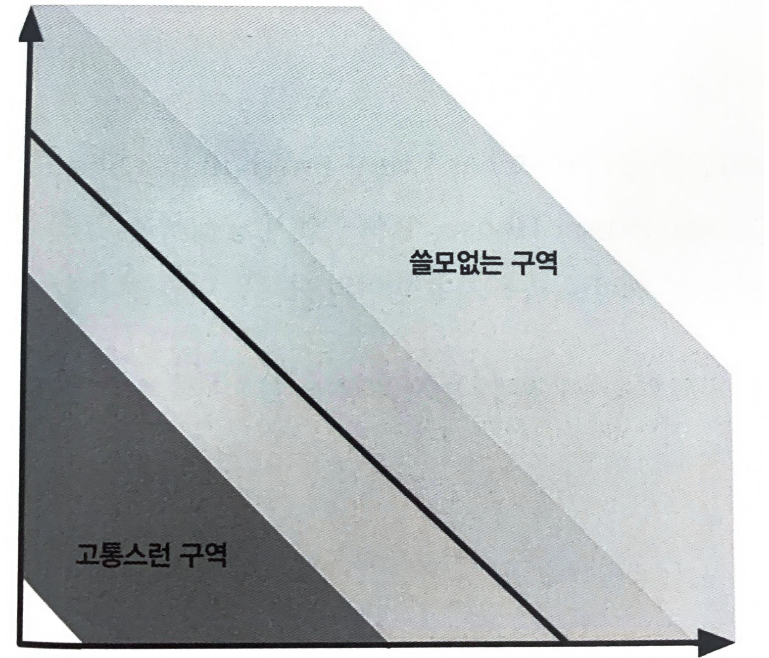 오른쪽 위로 치우친 부분을 쓸모없는 구역(즉, 너무 추상화를 많이해서 사용하기 어려운 코드), 반대로 왼쪽 아래로 치우친 부분을 고통스런 구역(즉, 추상화를 거의 안 하고 구현 코드만 잔뜩 넣어 취약하고 관리하기 힘든 코드)이라고 한다.