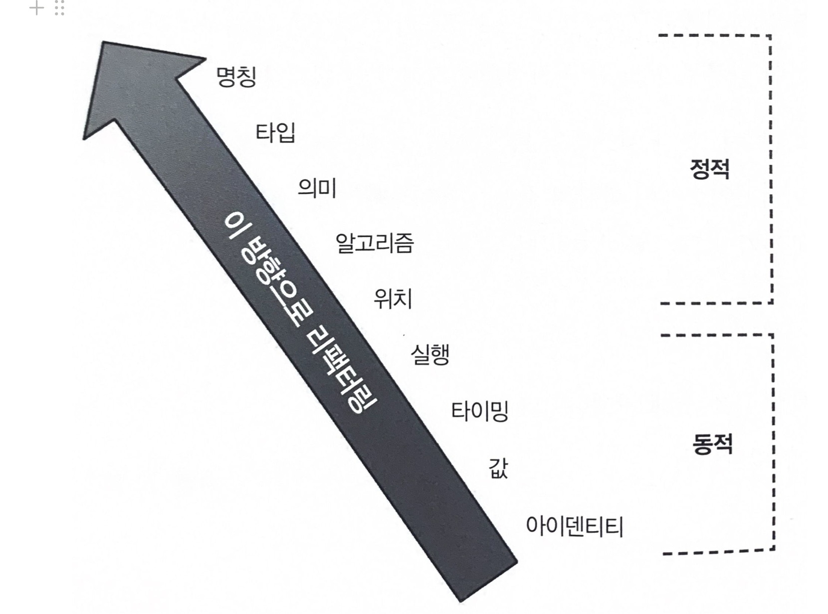 - 강도 커네이선스 강도는 리팩터링을 안내하는 충실한 표지판이다.정적 커네이선스는 개발자가 간단히 소스 코드를 분석하거나 최신 도구를 활용하면 어렵잖게 개선할 수 있기 때문에 아키텍트는 동적 커네이선스보다 정적 커네이선스를 선호한다. 예를 들어, 의미 커네이선스를 생각해보면 매직 밸류(magic value) 대신 기명 상수(named constant)를 만드는 명칭 커네이선스로 리팩터링하면 의미 커네이선스가 개선될 것이다.