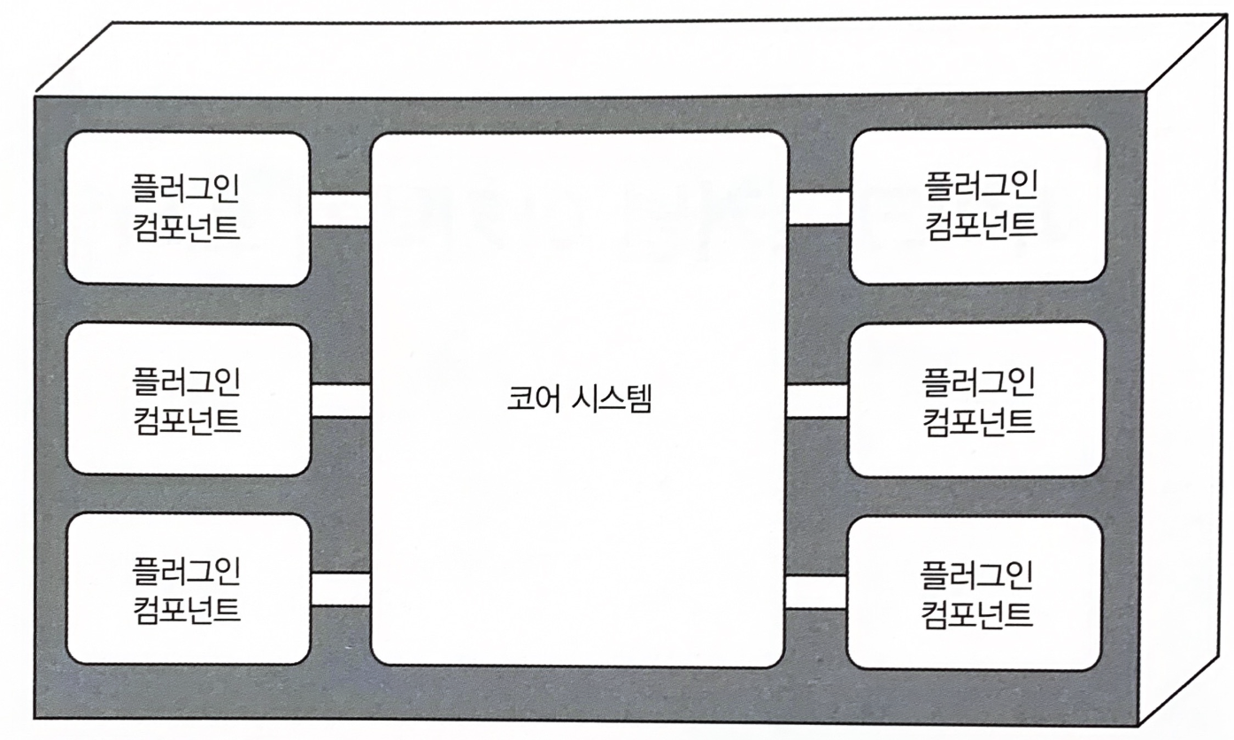 이미 수십 년 전에 만들어진 마이크로커널 아키텍처(microkernel architecture, 플러그인 아키텍처라고도 함)는 오늘날에도 널리 쓰이고 있다. 이 아키텍처 스타일은 (단일 모놀리식 배포 단위로 패키징해서 다운로드 및 설치가 가능하며, 보통 고객 사이트에서 서드파티 제품으로 설치되는) 제품 기반 애플리케이션에 적합하며, 비제품 고객 비지니스 애플리케이션에도 많이 사용된다.