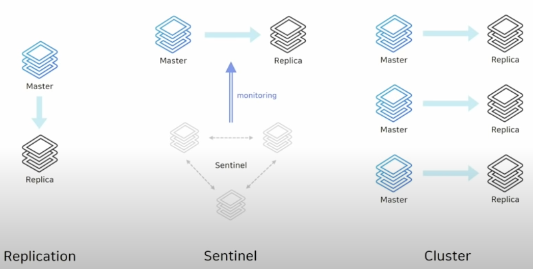 - 그 외 Redis 아키텍처와 관련된 건 Replication, Sentinel