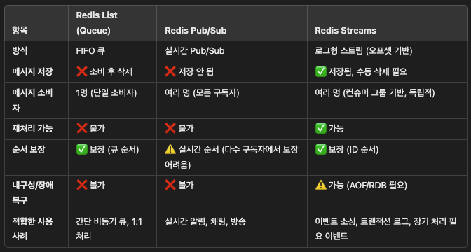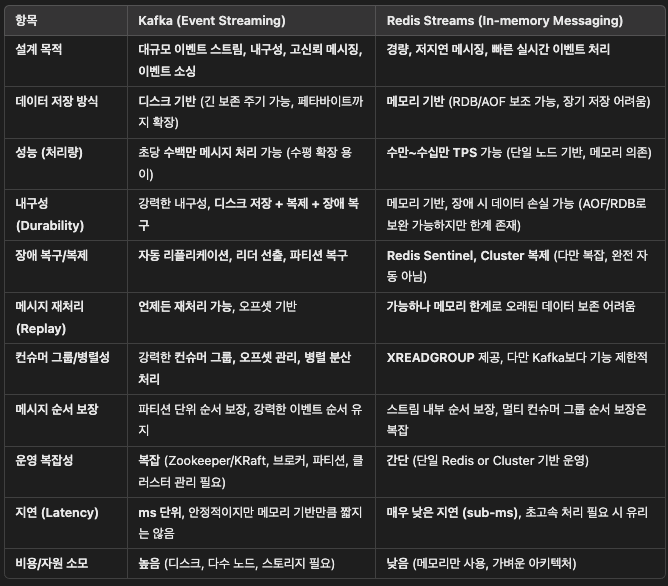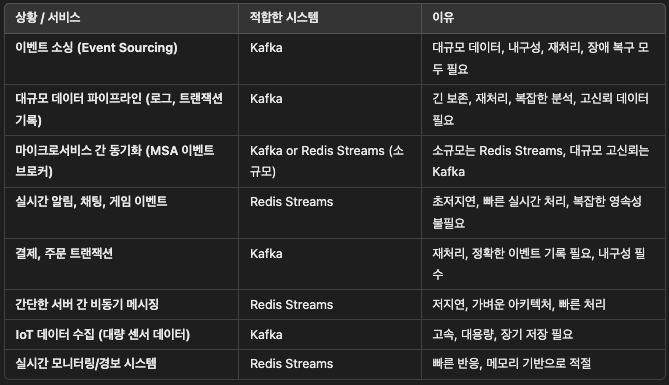 - Redis와 Kafka의 차이점 및 적절한 활용 방안은? (이거)