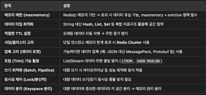 - 대용량 데이터를 저장할 때 주의할 점은 무엇인가?