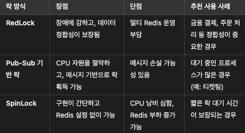 - 한계: 락 시스템 장애 시 Redis 조작 불가