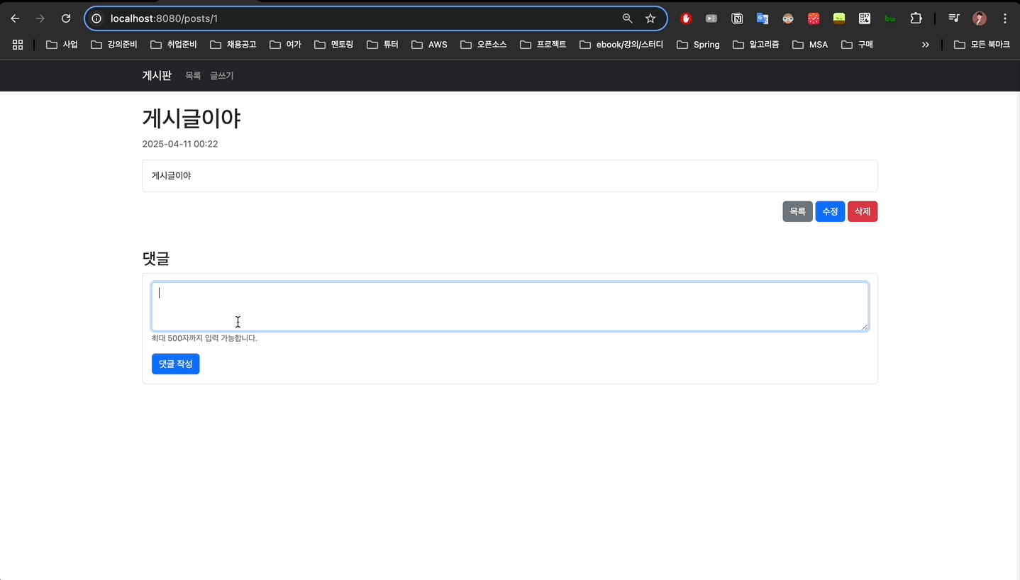 따로 수정해준 것 없이, 전부 반영해주니 API 관련 로직은 물론, 아래와 같이 글 작성 UI에 댓글 작성 UI가 추가된 것을 확인할 수 있었습니다.