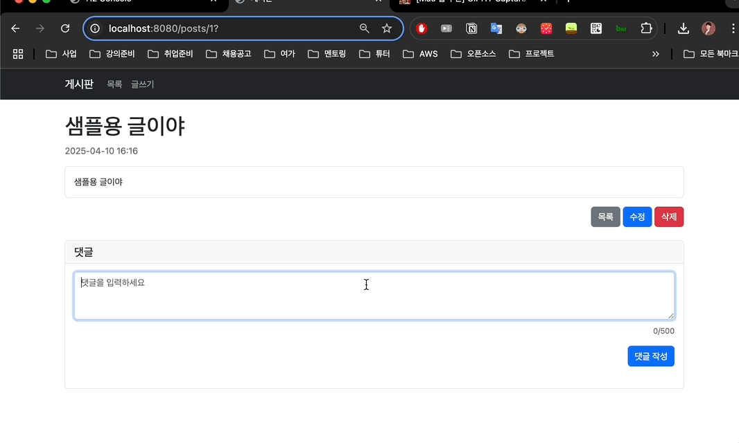 백엔드 API 로직은 Post와 Comment가 각각 독립적 도메인이어서인지, 문제가 없었습니다. 문제가 발생한 영역은 기존 코드를 수정하여 처리하는 프론트엔드 영역이었습니다. 아래 화면에서 확인 할 수 있듯, UI 생성까지는 잘 처리해줬습니다.