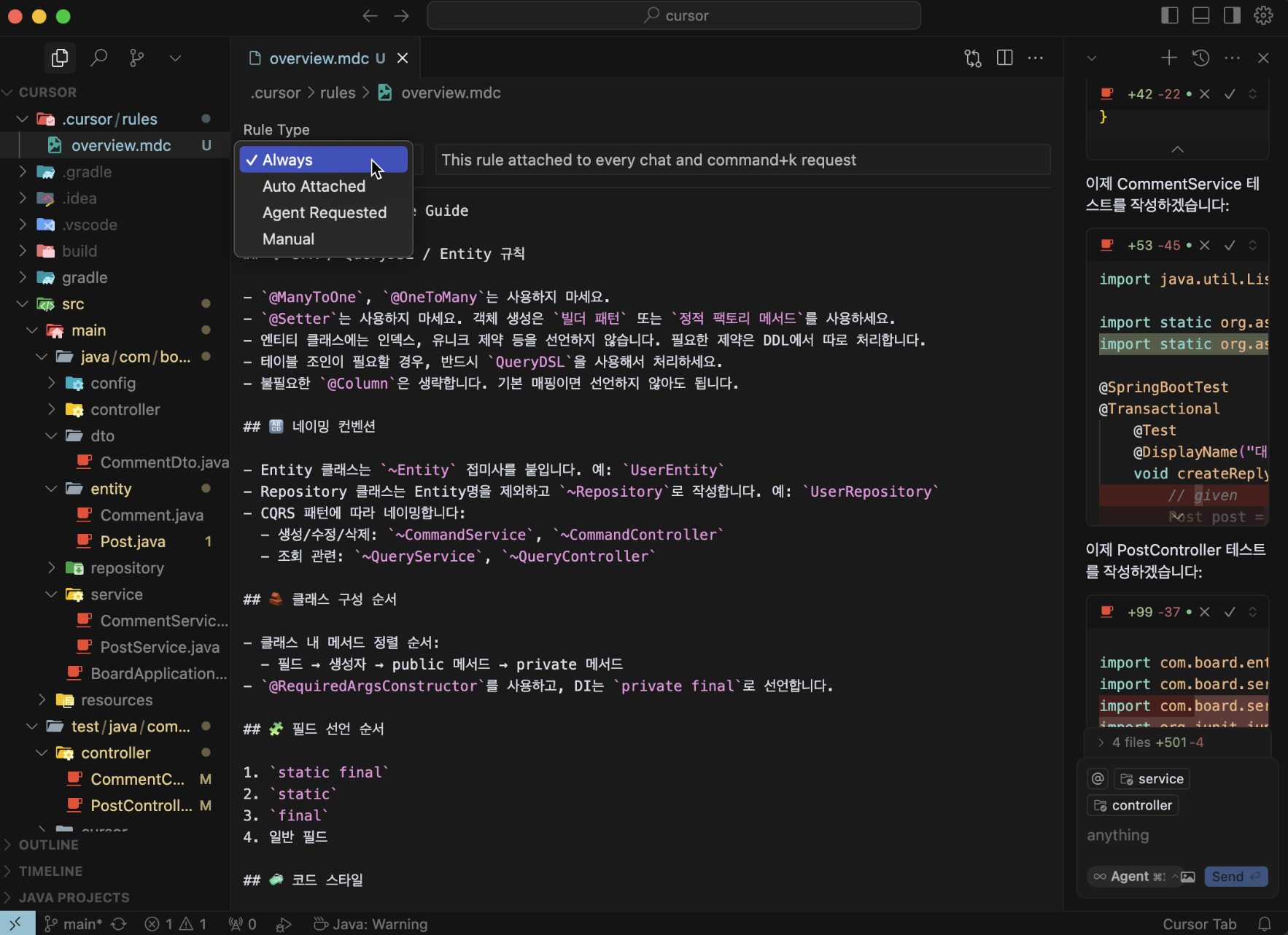 - 두번째 글 : [기타] - 10분 만에 세팅 끝! Cursor로 Java 백엔드 개발 환경 갈아타기